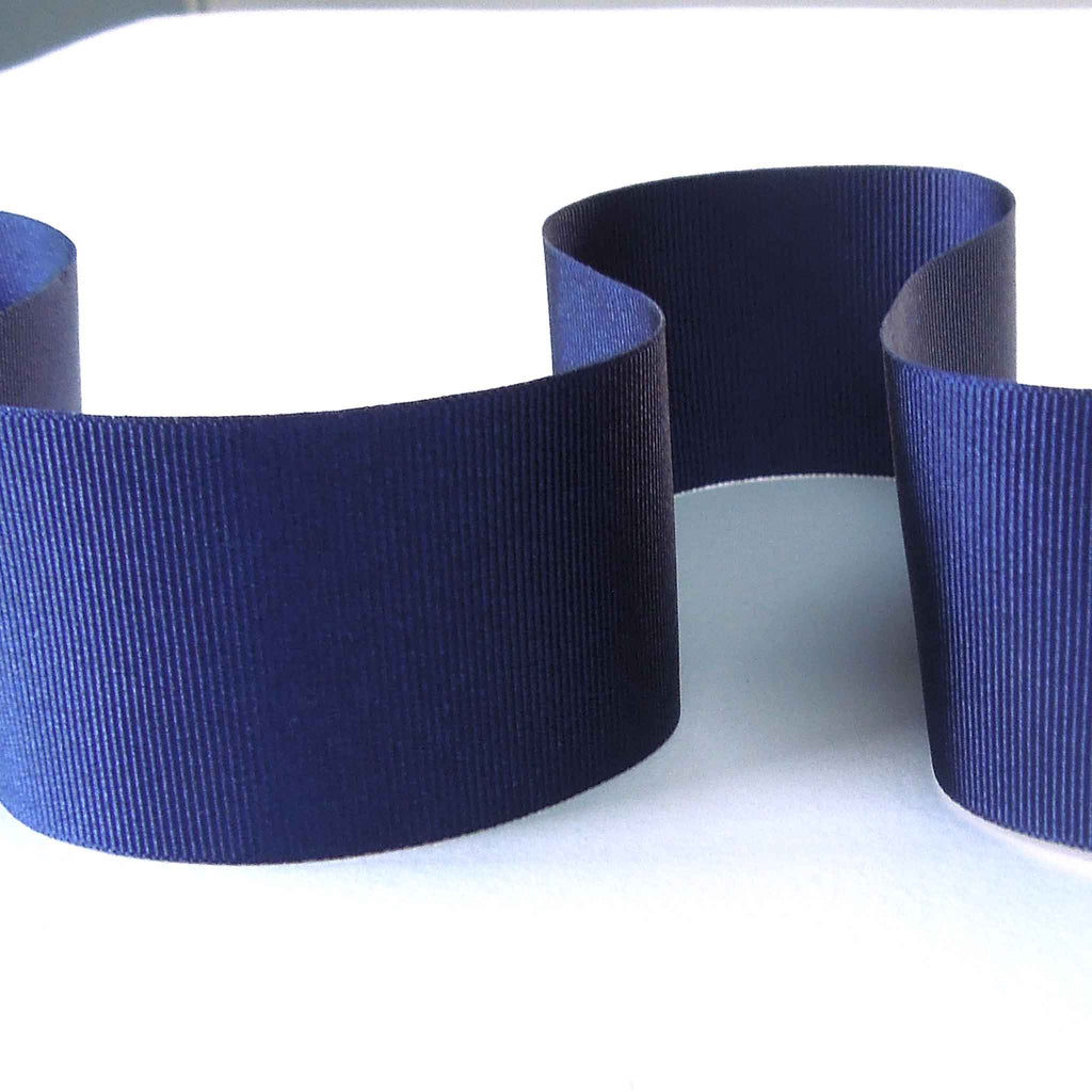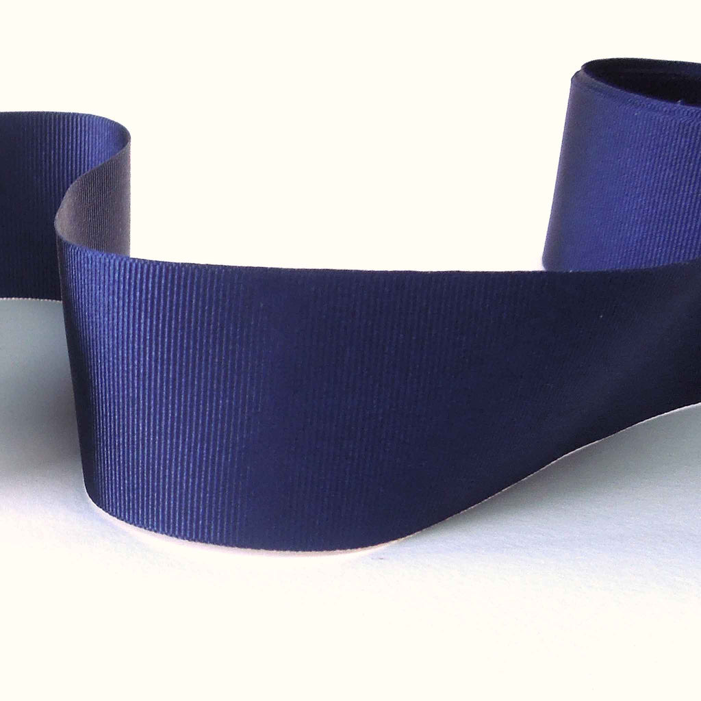 A plain 40mm navy blue coloured grosgrain ribbon. This luxurious corded ribbon features a traditional textured ribbed effect which adds style and dimension.