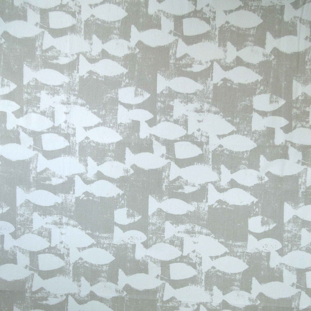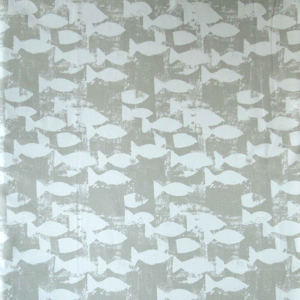 Shoal - Pebble Grey Fish - Cotton Furnishing Fabric - Prestigious Textiles