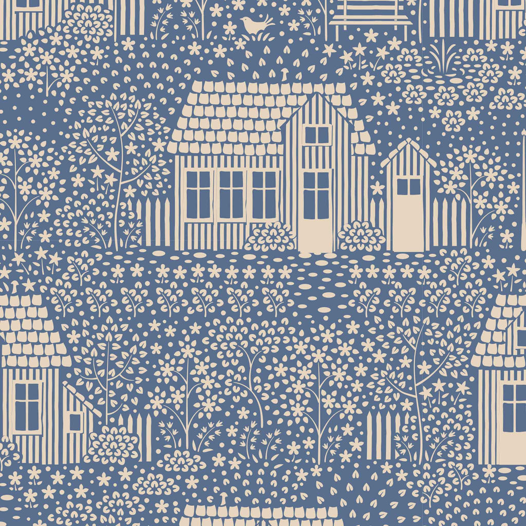 Tilda My Neighbourhood Blue Cotton Fabric - Hometown Collection - Tilda 110058