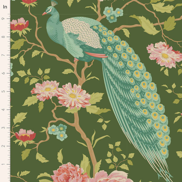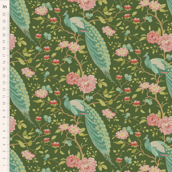 Tilda Peacock Tree Cotton Fabric - Green - Chic Escape Collection - Tilda 100441