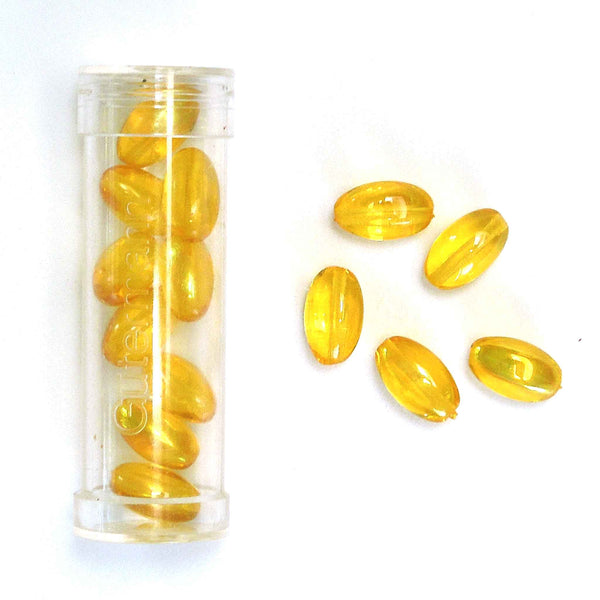 Gutermann 12mm yellow olive beads, perfect for your crafts and activities. 14 beads in a clear plastic reusable container.