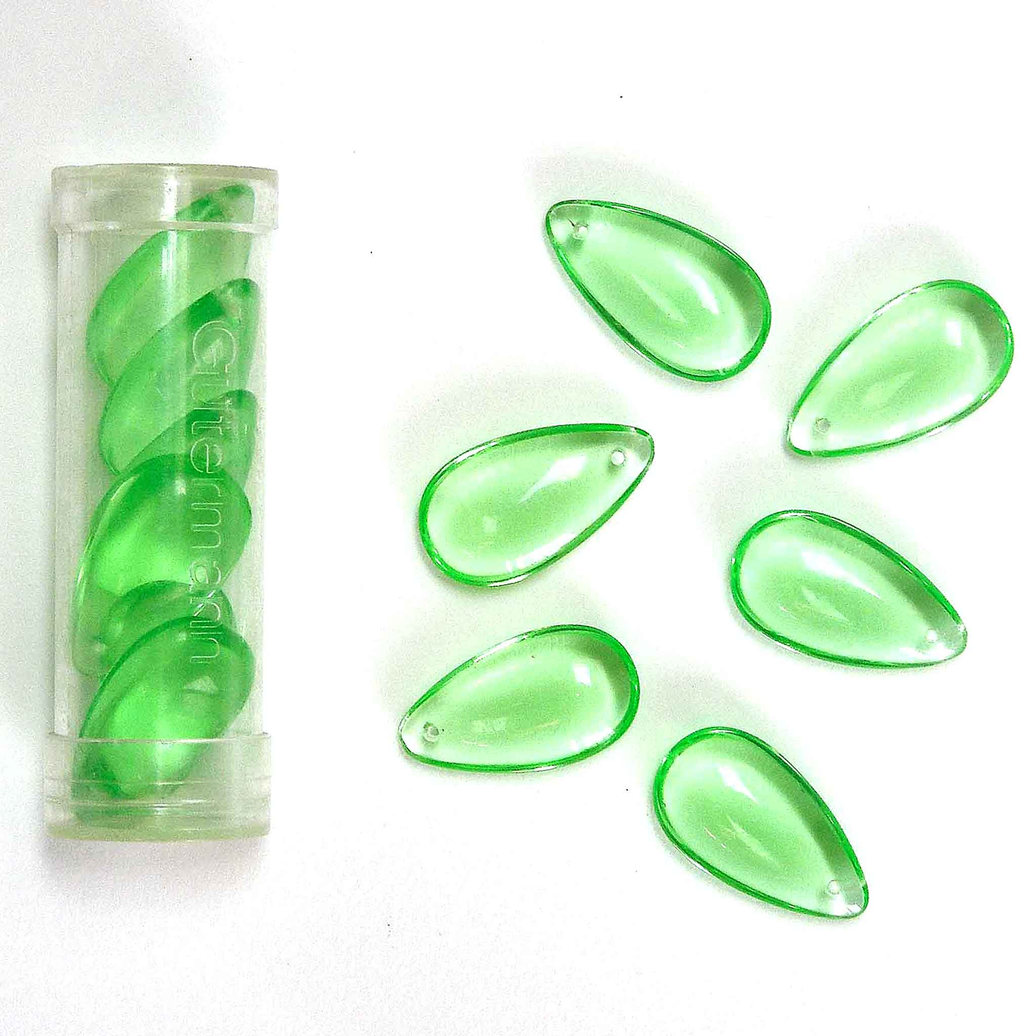 Gutermann 12x21mm mint green large drop glass beads, perfect for your crafts and activities. 6 beads in a clear plastic reusable container.
