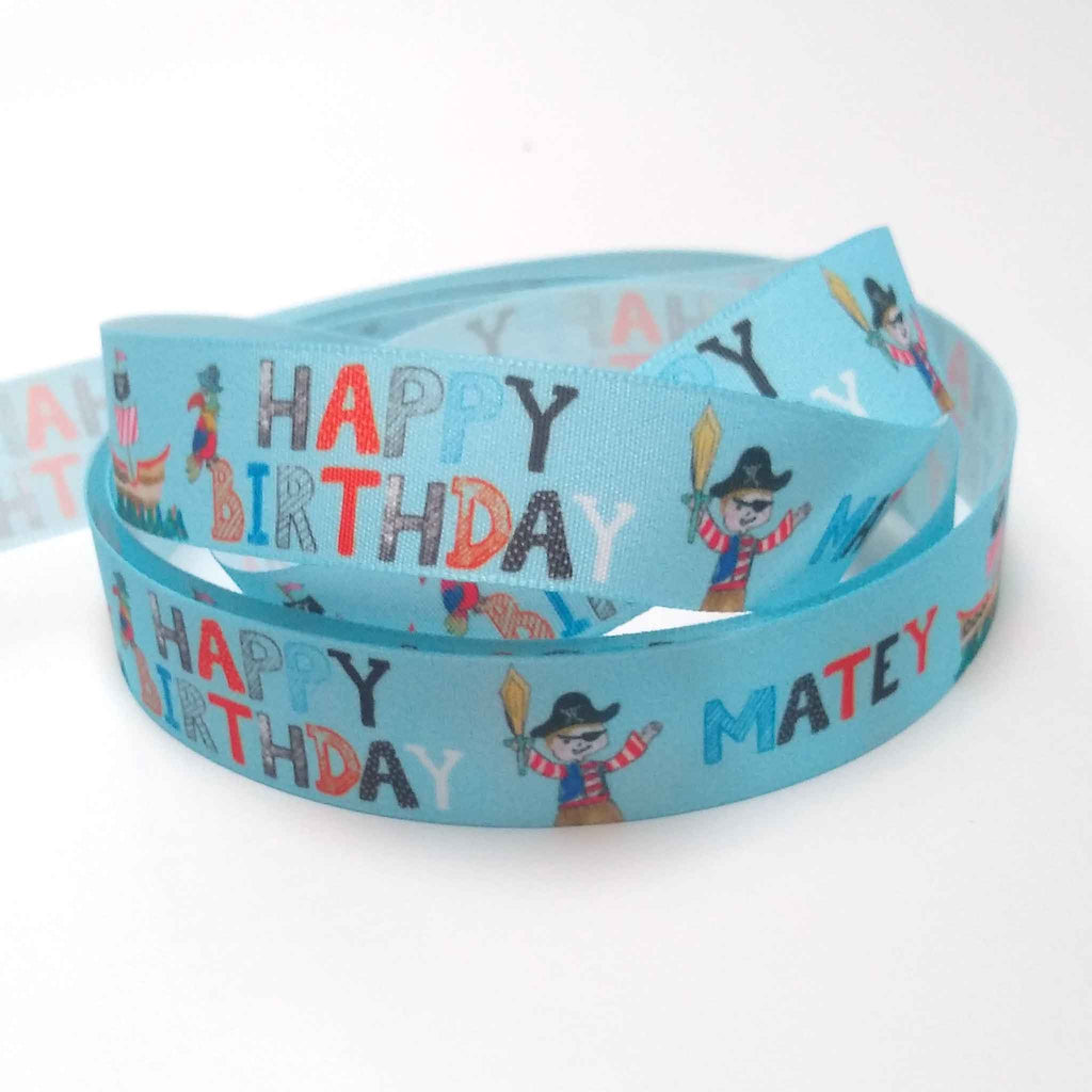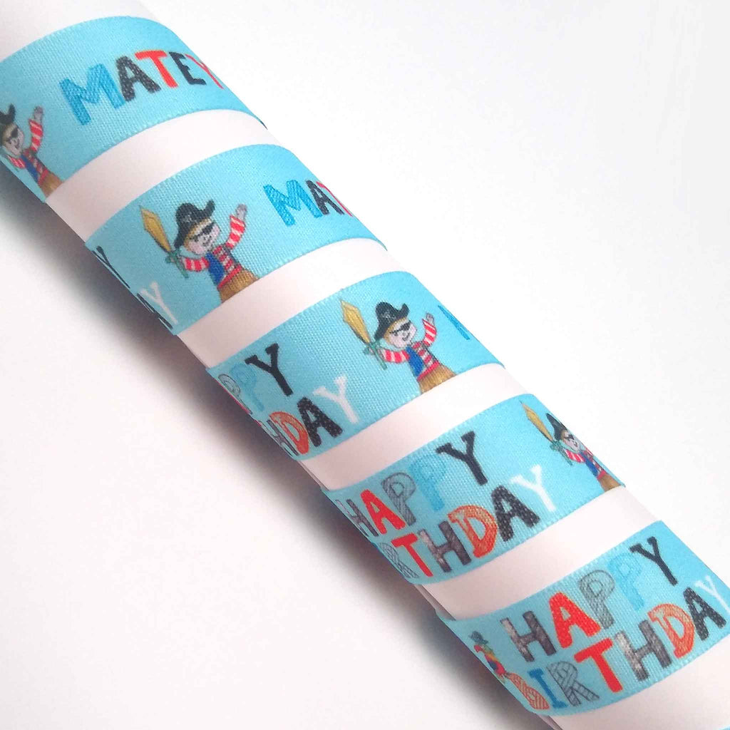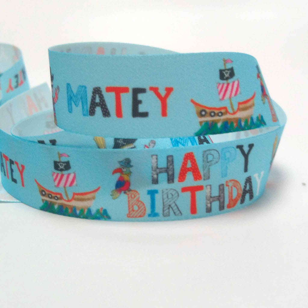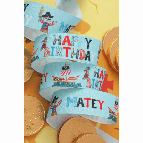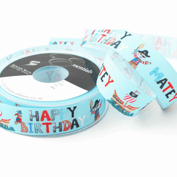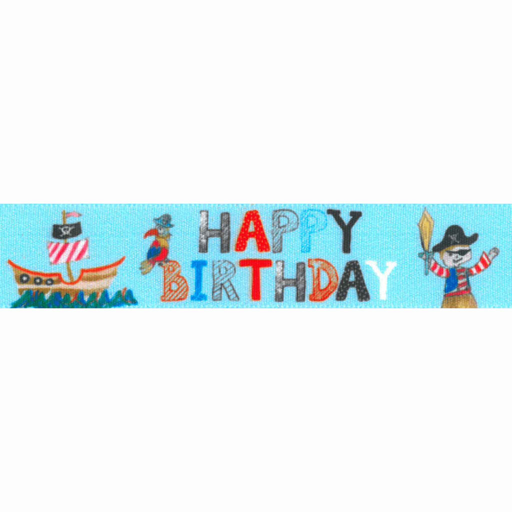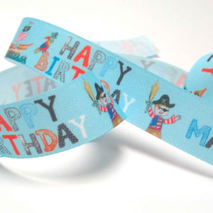 25 mm Kid's Blue Birthday Pirate Ribbon by Berisfords