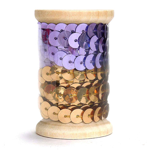 6mm Flat Sequin Trim on Wooden Bobbin - Lilac - Gold - 2 metres