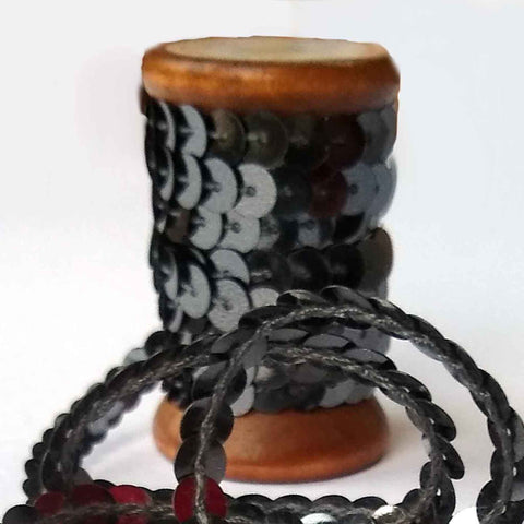 6mm Sequin Trim on Wooden Bobbin - Dark Grey - 3 metres