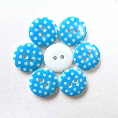 15mm Blue on White Small Polka Dot Buttons - Pack of 10 Buttons
