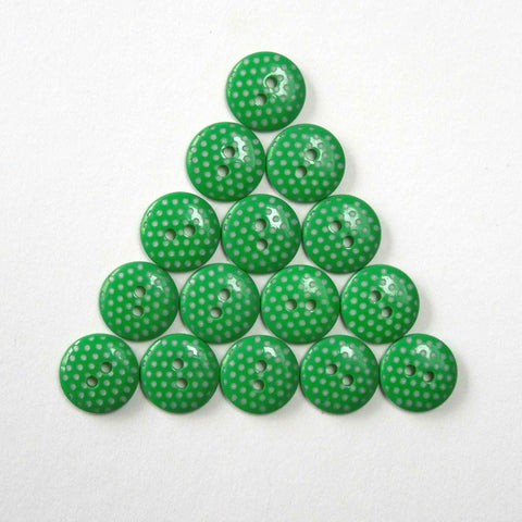 15mm Green Microdot Buttons - Pack of 12 - Green Small Polka Dot Buttons