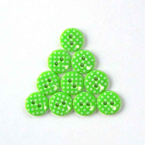12mm Bright Green Polka Dot Buttons - Pack of 10 Buttons