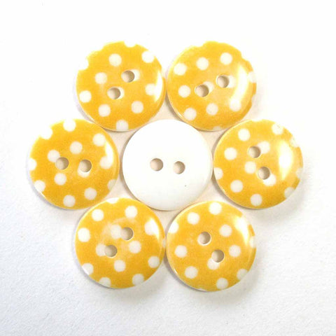 15mm Yellow on White Small Polka Dot Buttons - Pack of 10 Buttons