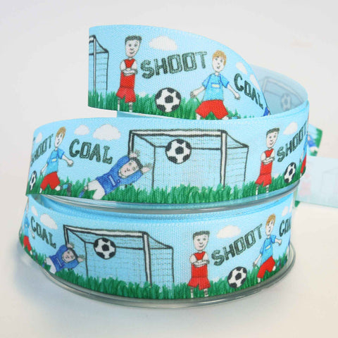 25mm White Sheep and Cloud Blue Taffeta Ribbon