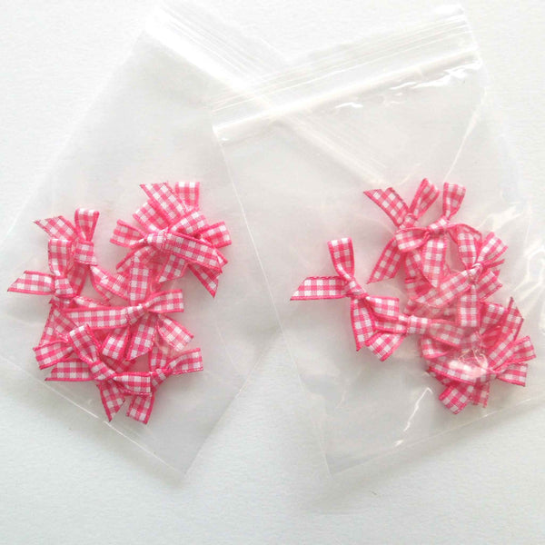 7mm Ribbon Bows - Bright Pink Gingham - Pack of 15