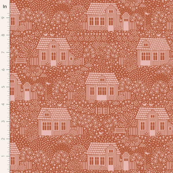 Tilda My Neighbourhood Rust Cotton Fabric - Hometown Collection - Tilda 110059