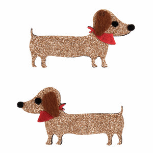 These fun dachshunds are made from glitter covered card. They have felt ears, nose and eyes and a red bandanna around their necks. They can be stuck on or used loose in a variety of crafts.