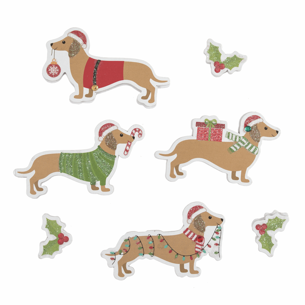 1 Pack containing 4 dachshunds, 3 holly sprigs,