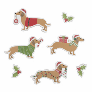 A fun Christmas Dachshund craft pack. A lovely embellishment for a DIY or handmade Christmas Card. Perfect for all your Xmas crafts, presents and gift wrapping. Kid's will love the festive Dachshunds all wrapped up in Christmas scarves, hats and coats. Fun for all the family.