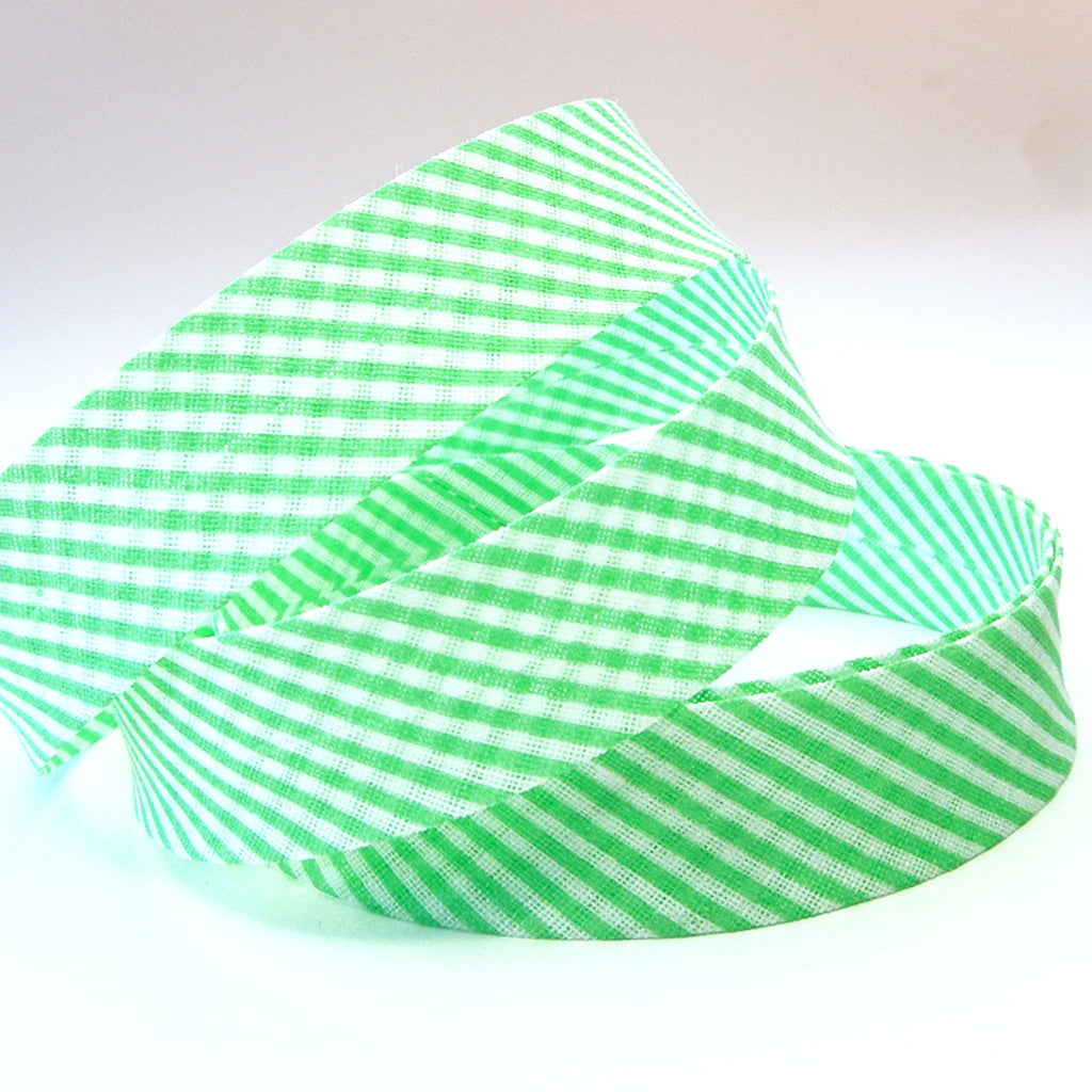 Details: Single Fold Bias Binding Material: 100% Cotton Design: Green Striped Width: 20mm 100% Cotton Brand: Essential Trimmings Made on Italy