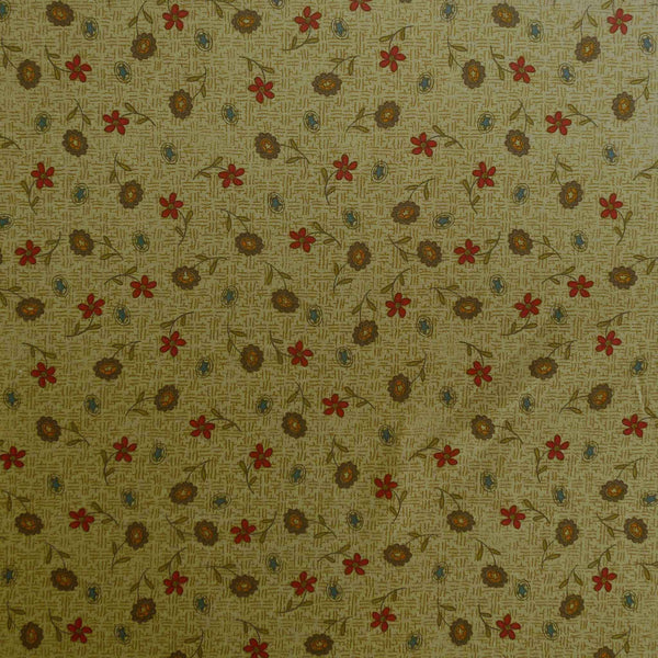 This muted Red Daisies on Green flower patterned fabric by Henry Glass, Sunny Side Up 1553, is part of the Buggy Barn Collection by Henry Glass.