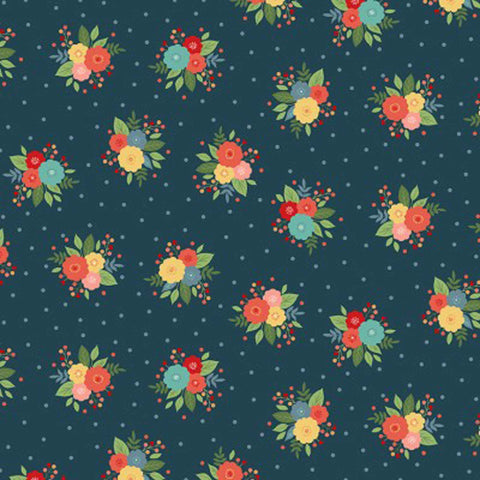 Posy Floral Cotton Fabric - Blue - Makower 2509/B - Amelia Collection