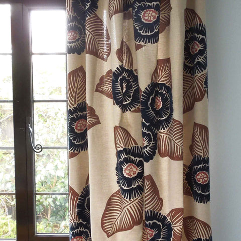Large Blue Floral Pattern on Natural - Furnishing Fabric .