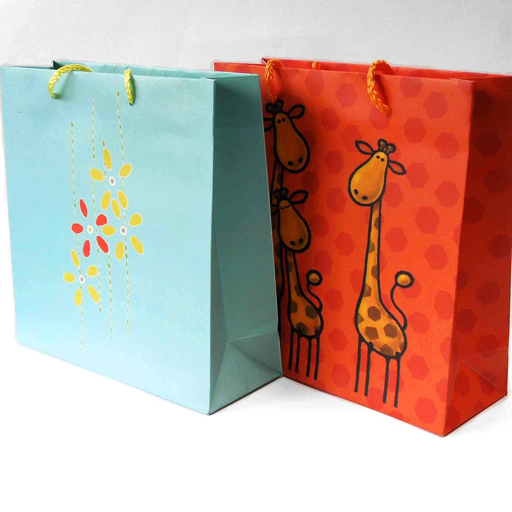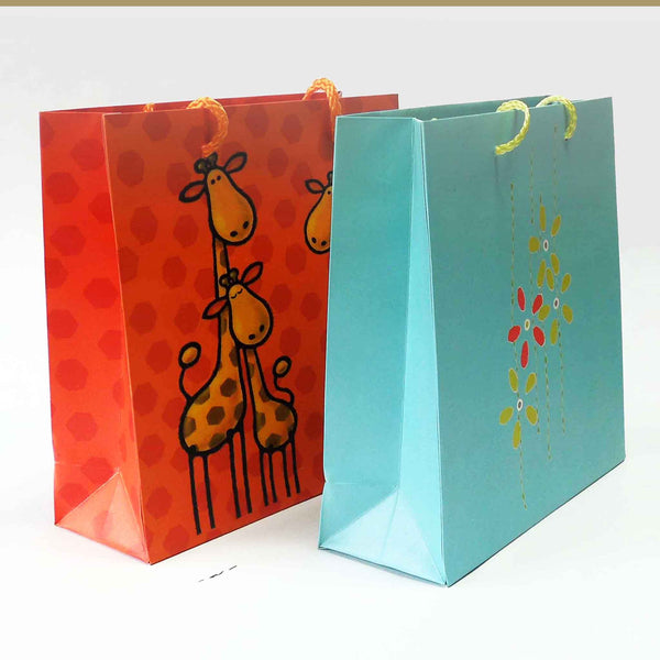 Kid's Orange Giraffe Paper Gift Bag with Cord Handles - Pack of 2
