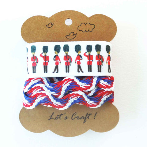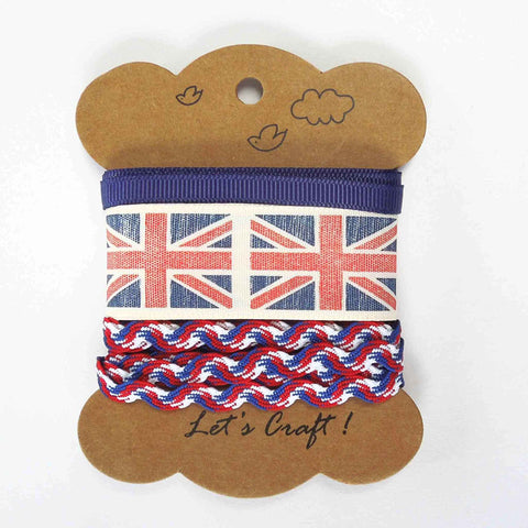 25mm Union Jack Ribbon - Berisfords - 7mm RicRac - 5mm Blue Grosgrain