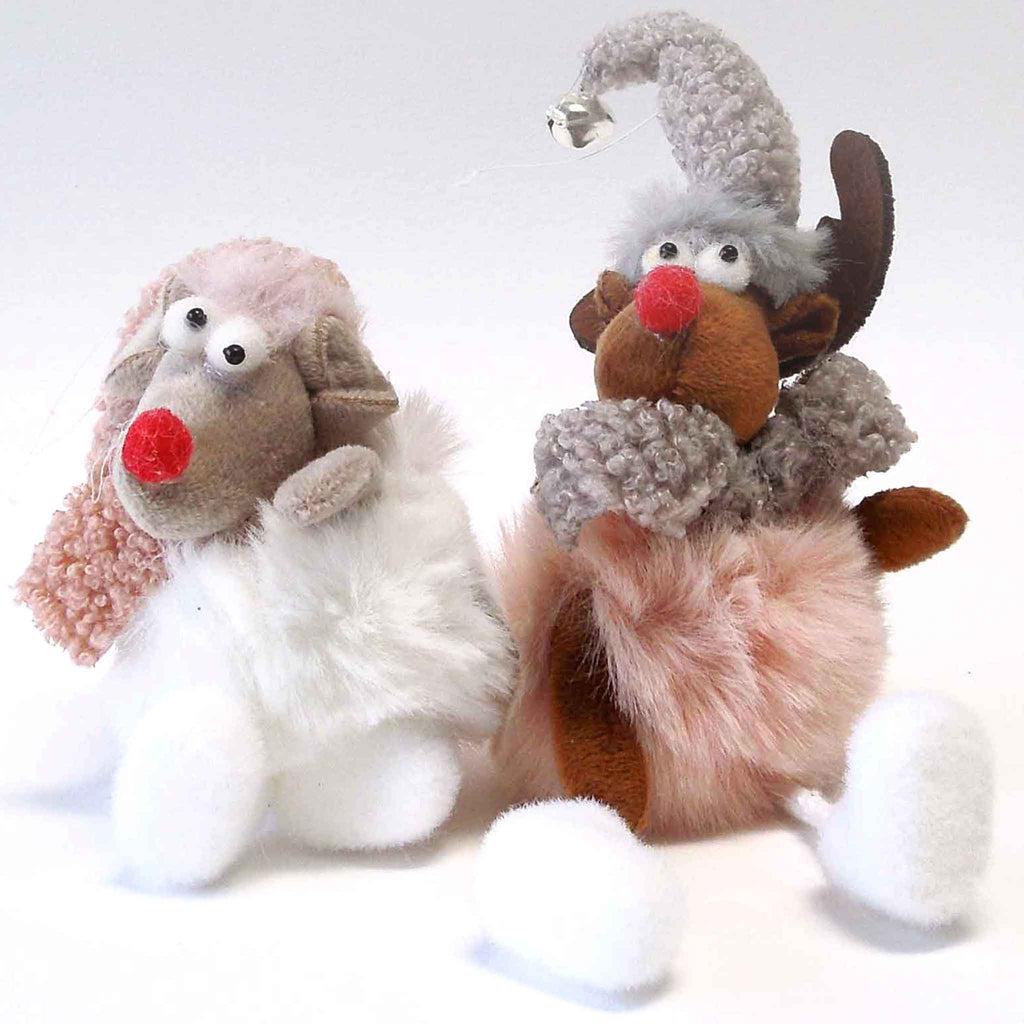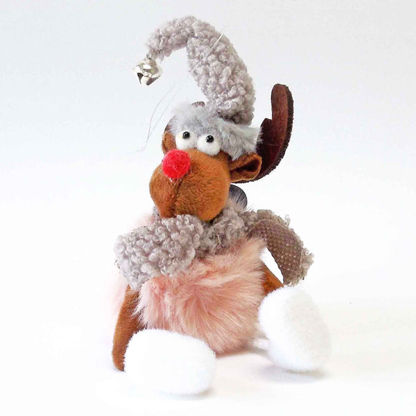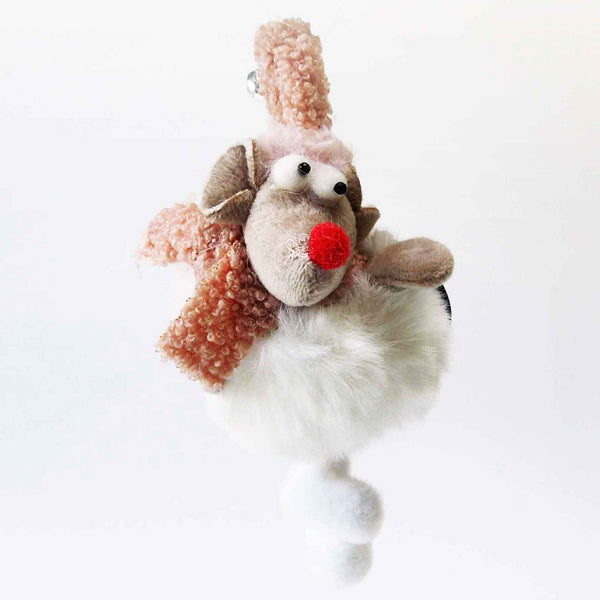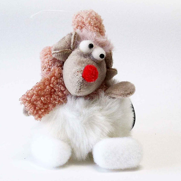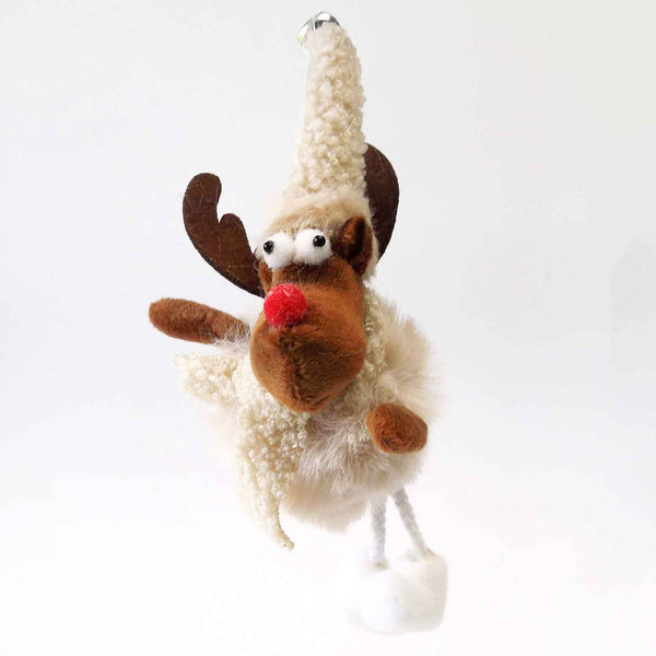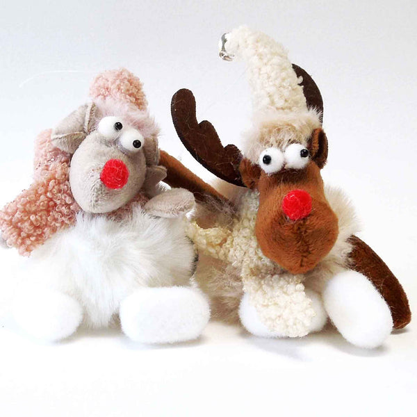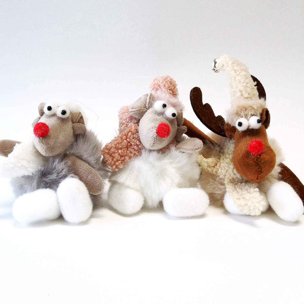 Fun and fluffy Christmas reindeer, with or without antlers, in a choice of colours; cream, grey, pink or white. Perfect as a decoration, to hang from the Christmas tree or from a wreath. They are each approximately 19cm to 22cm tall from the top of their heads to their dangling feet.