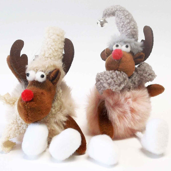 Fluffy Reindeer Christmas Decorations - 22cm tall - Choice of 4 Colours