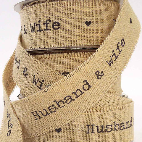 22mm Husband & Wife Linen Wedding Ribbon - Frayed Edge Linen and Cotton