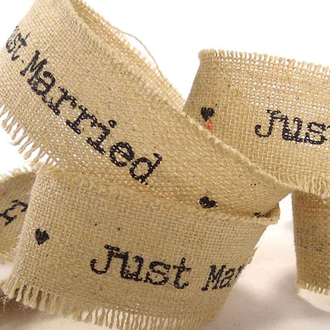 22mm Just Married Linen Wedding Ribbon - Frayed Edge Linen and Cotton