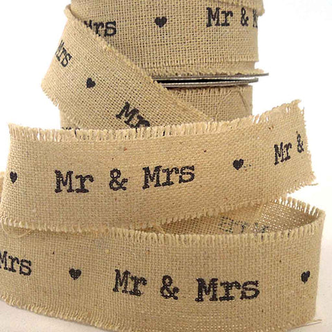 22mm Mr & Mrs Linen Wedding Ribbon - Frayed Edge Linen and Cotton