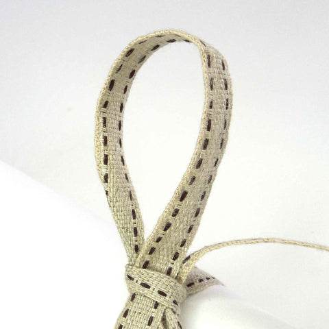 Top Stitched Linen Ribbon - Black and Natural - La Stephanoise - 10mm