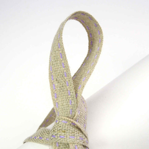 Top Stitched Linen Ribbon - Lilac and Natural - La Stephanoise - 10mm