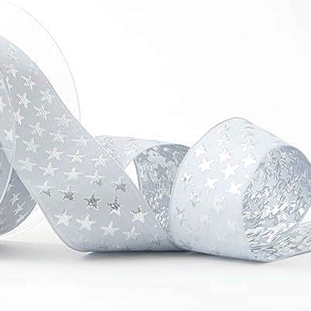 Galaxy Star Ribbon - Silver and Silver- Berisfords - 25mm