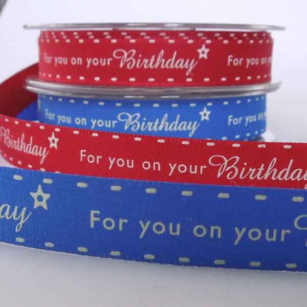 15 mm Blue For you on your Birthday Ribbon - Berisfords