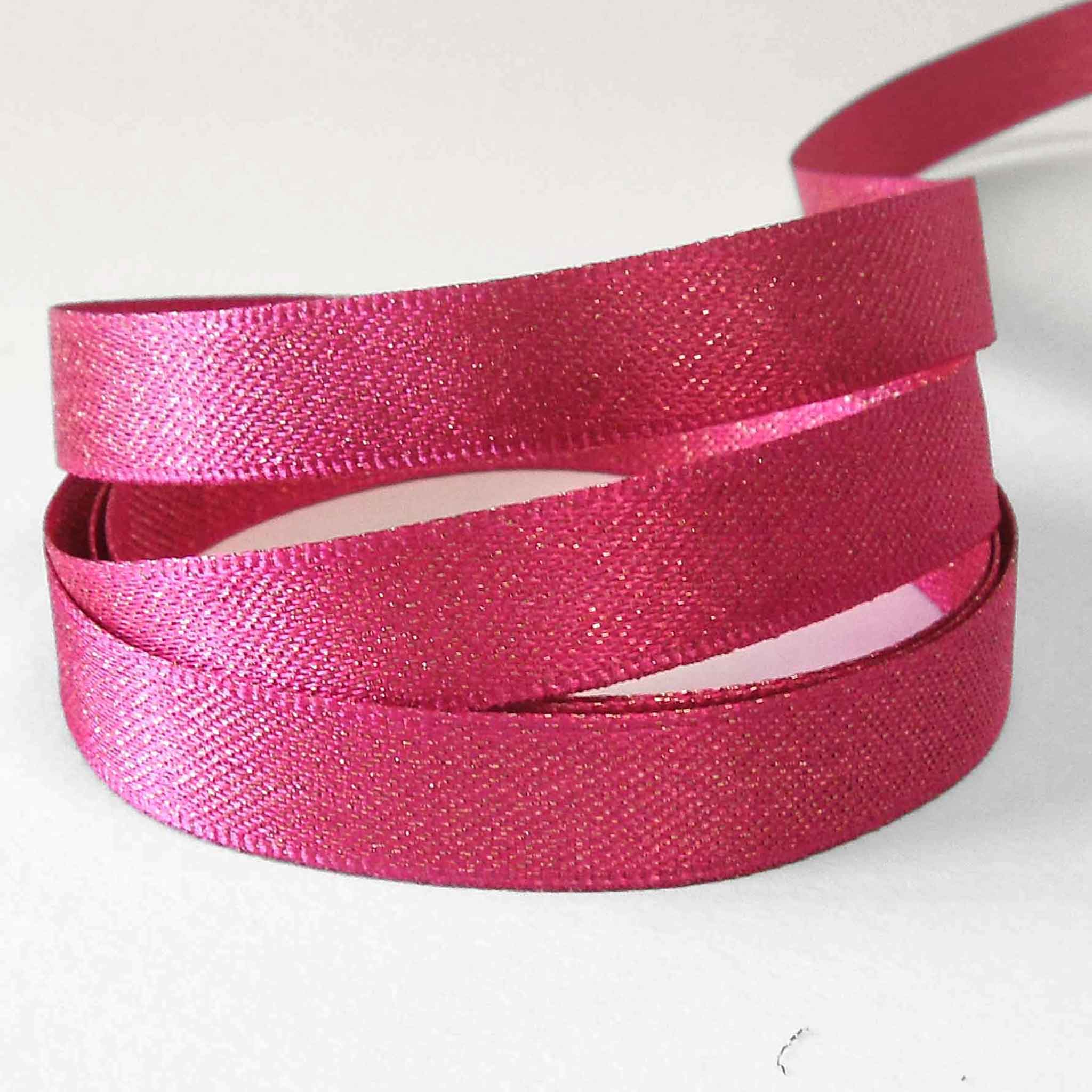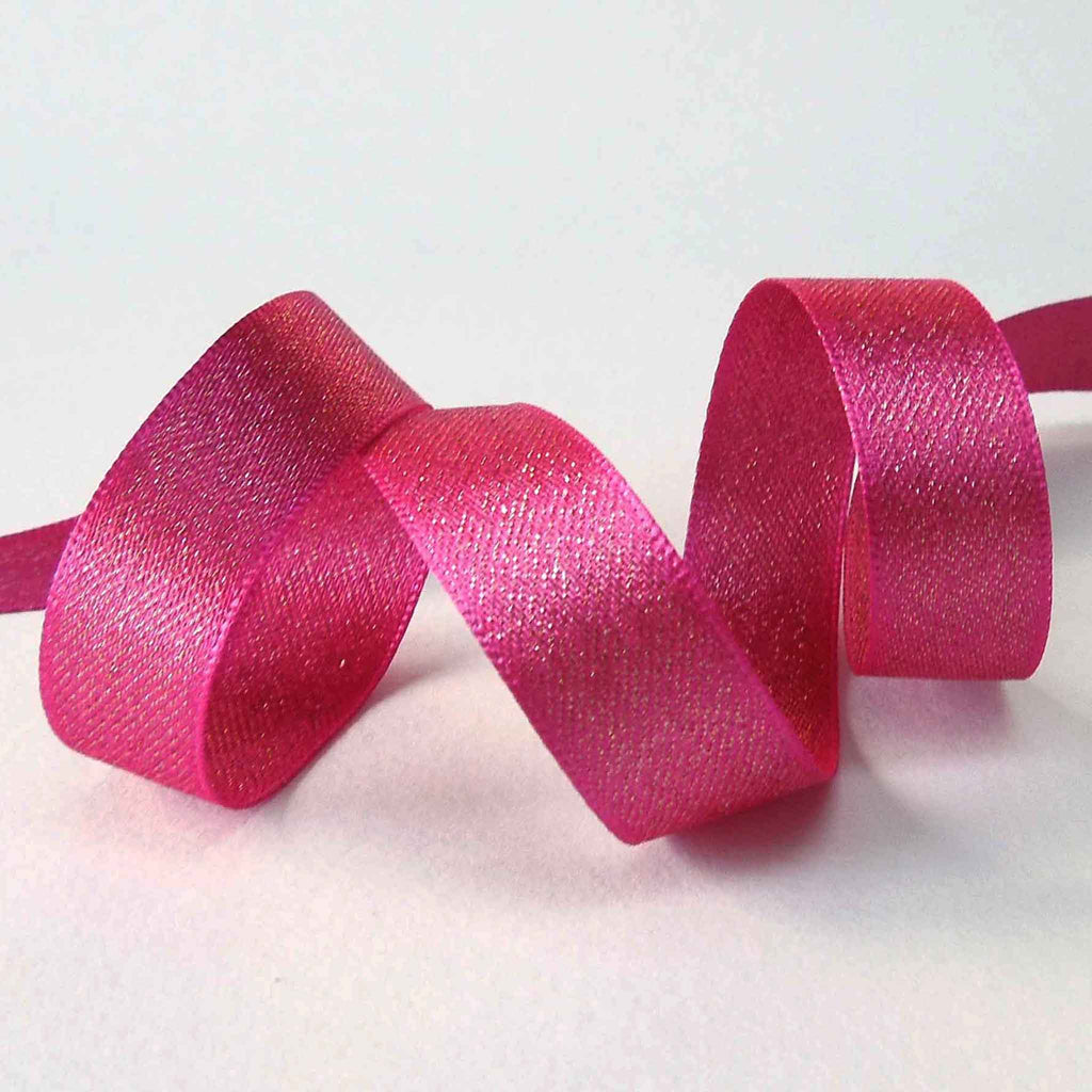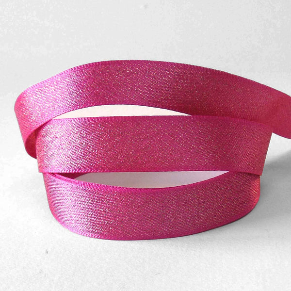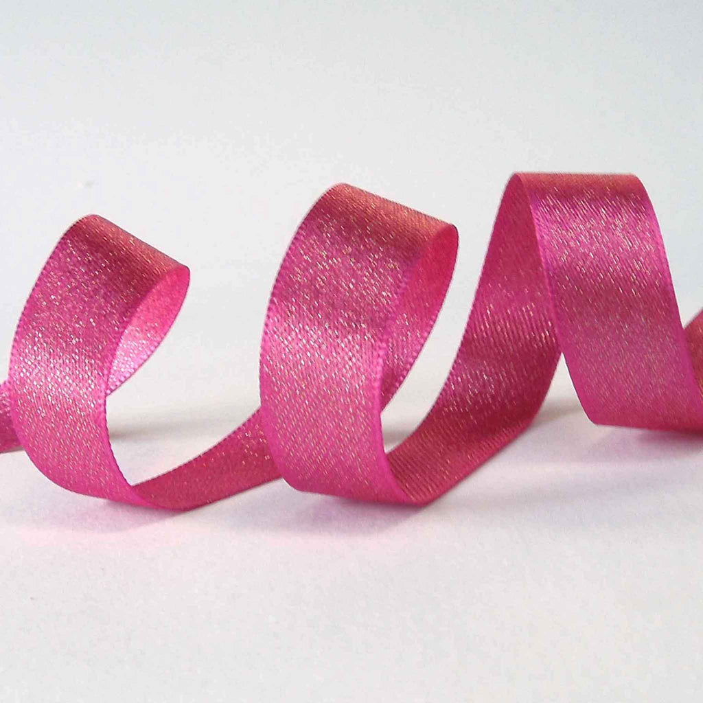 Glitter Satin Ribbon - Shocking Pink - Berisfords - 10mm - 15mm