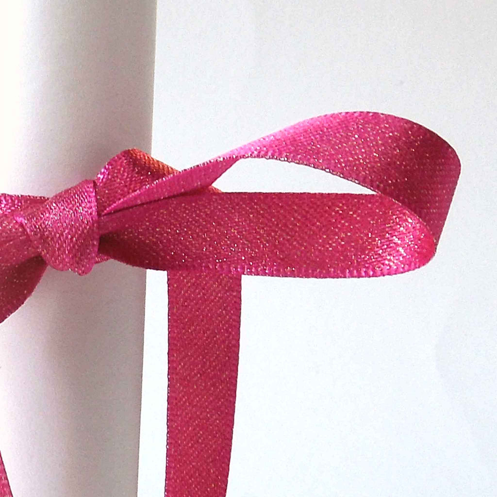 A glittery twist on the classic and versatile satin ribbon. Bring some sparkle into your crafting creations & decorations with this shocking pink glitter satin ribbon from Berisfords available in 10mm and 15mm widths.