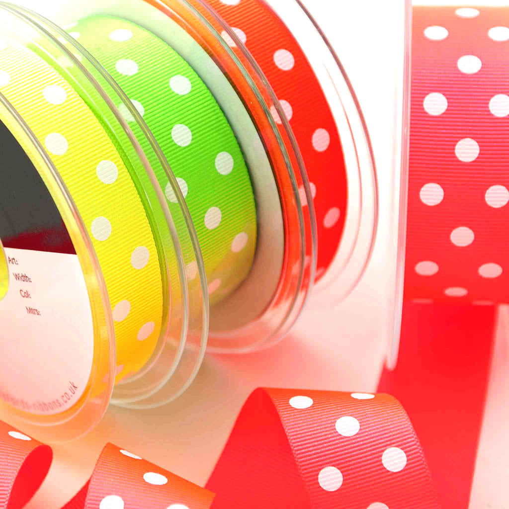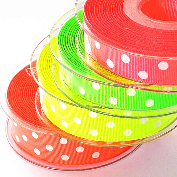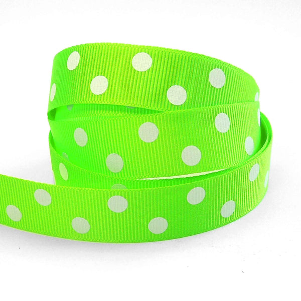 16mm Spotty Fluorescent Polka Dot Ribbon - Green - Berisfords
