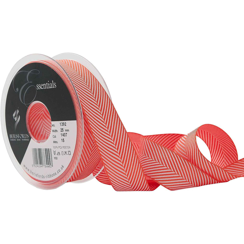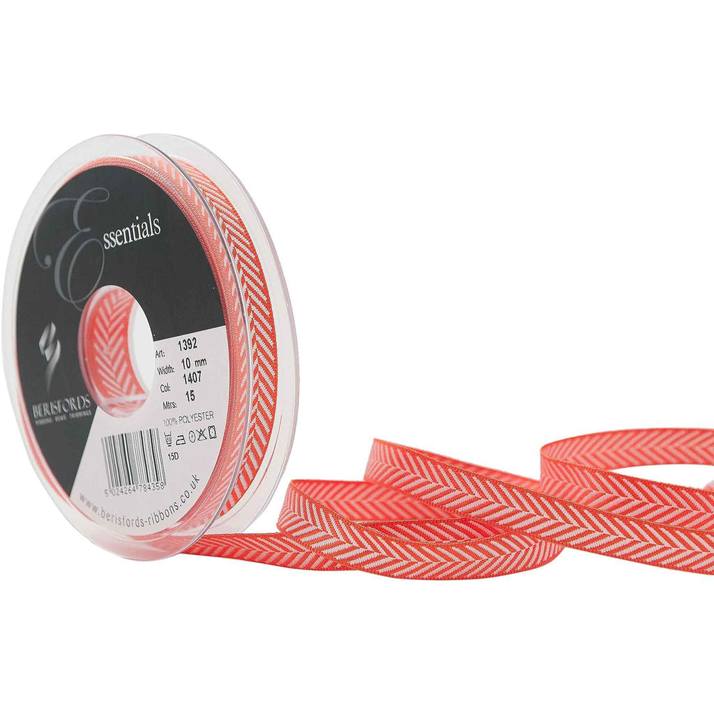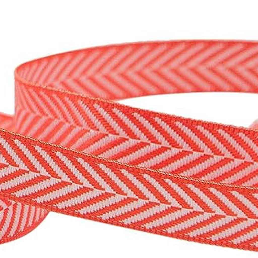 A woven herringbone patterned ribbon in orange and white. A versatile pretty design with a chevron pattern in the Berisfords ribbon collection. As it is reversible with the same on both front and back, it is perfect for bows and gift wrapping.