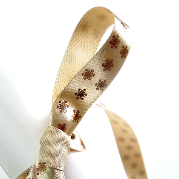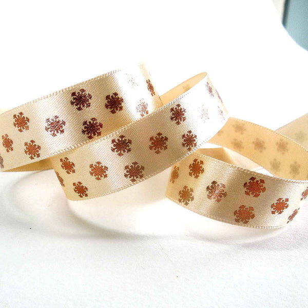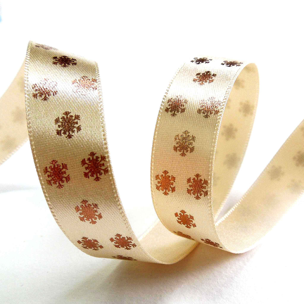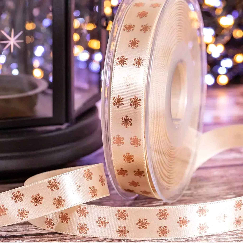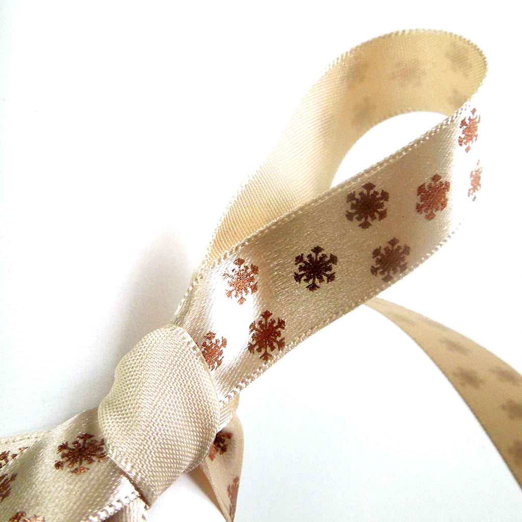 A scattering of rose gold metallic snowflakes on a cream background run along one side of this lovely ribbon. Customise your Christmas table of festive wreath with hand tied bows for a stylish and chic finish.