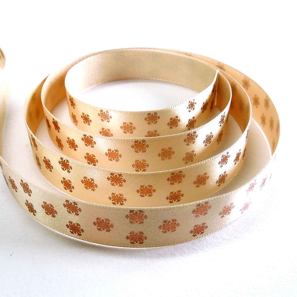 15mm Metallic Polka Flakes Ribbon - Cream/Rose Gold - Berisfords