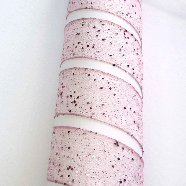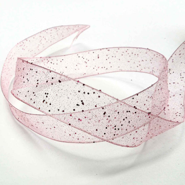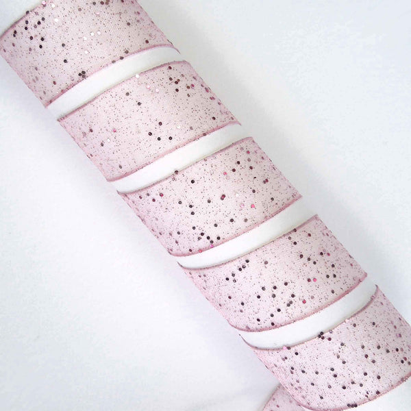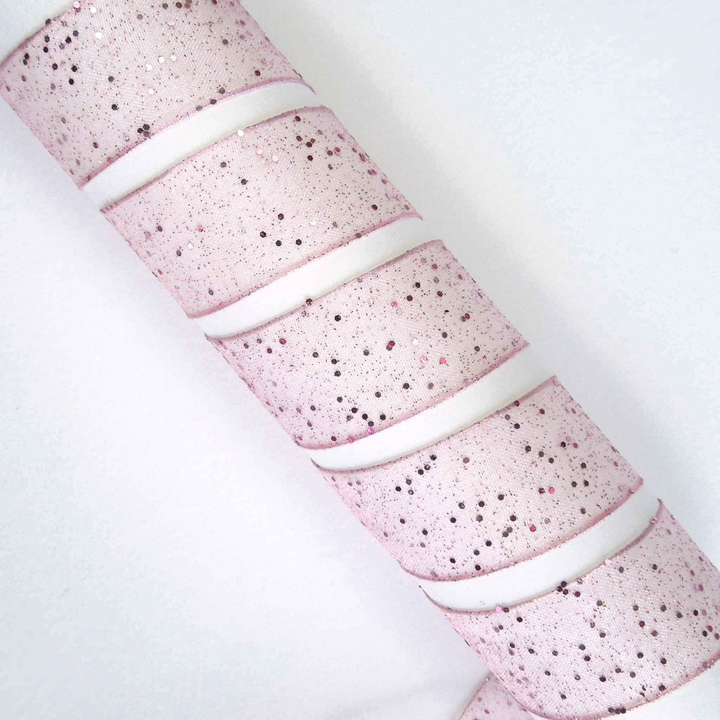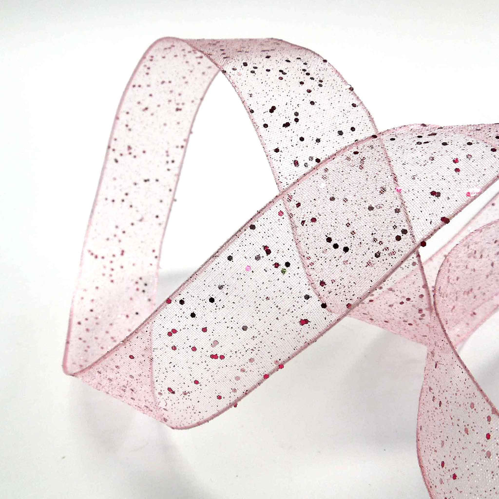 A pink sheer ribbon by Berisfords with a sprinkling of glitter creates a delicate and effervescent look. The wired edge assists in moulding the ribbon to shape, especially for bows for floral and decorative display. This is an elegant decorative gift wrap ribbon, perfect for many different colour schemes.