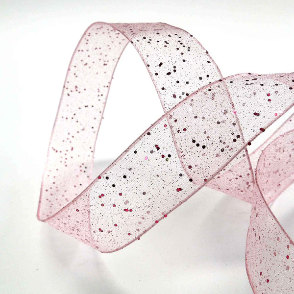 Random Glitter Sheer Ribbon - Pink - Berisfords - 25mm