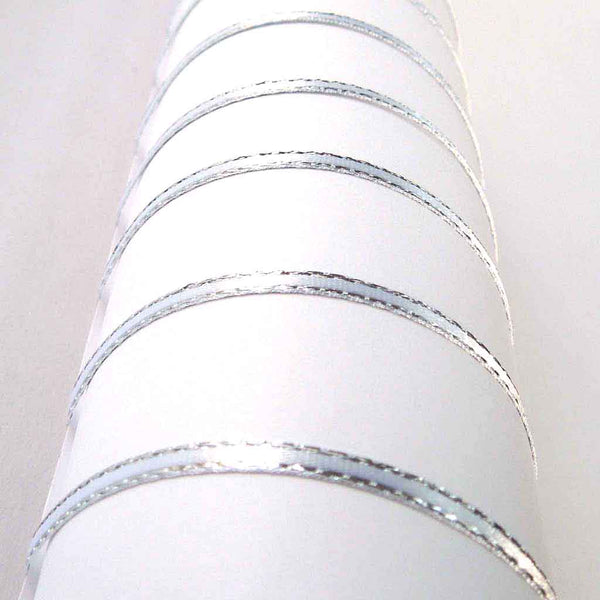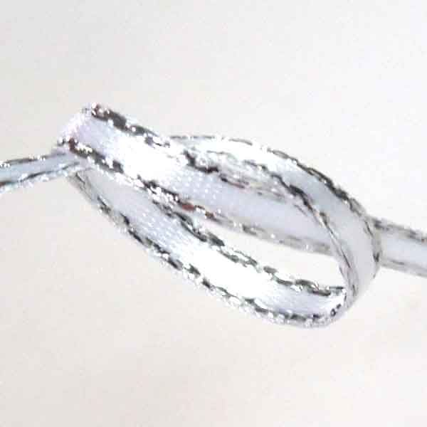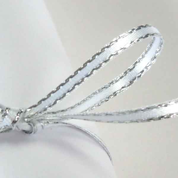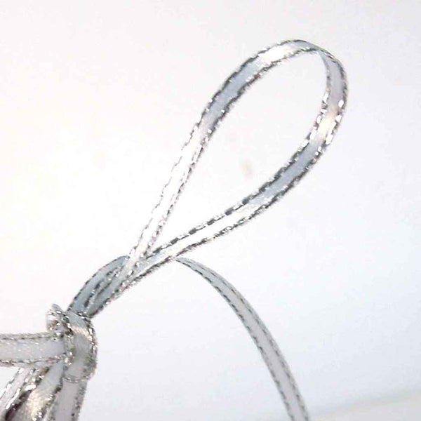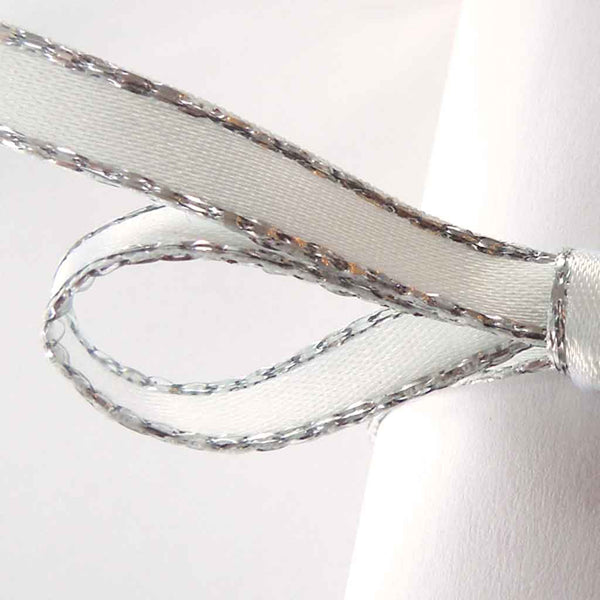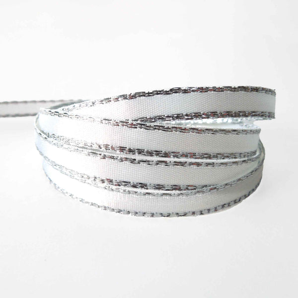 Silver Metallic Edge Satin Ribbon - White - Berisfords - 3mm - 7mm - 15mm