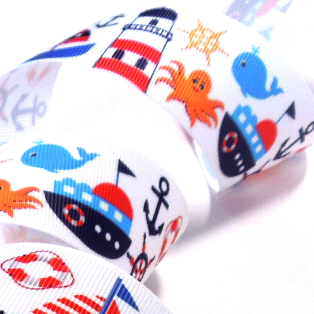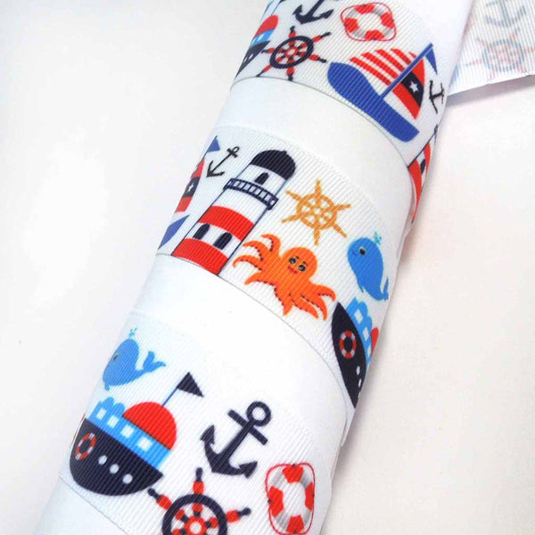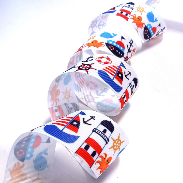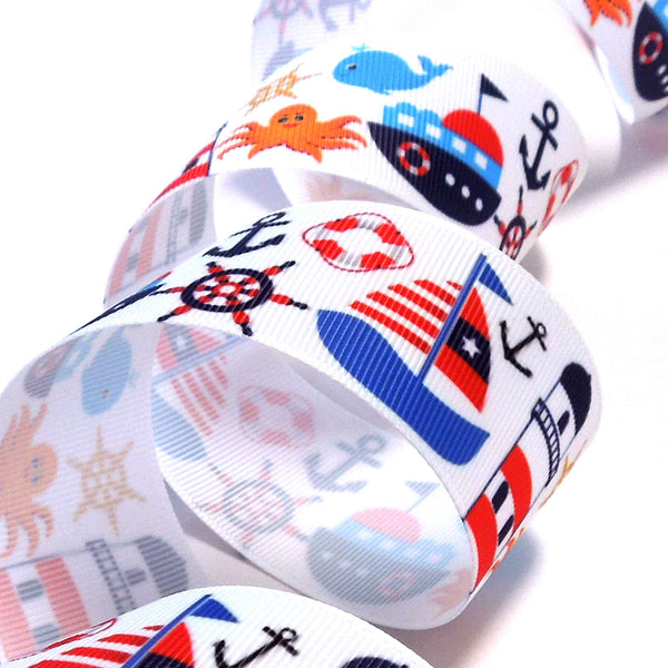 38mm Kid's Nautical Icons Ribbon - Grosgrain