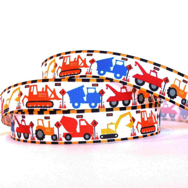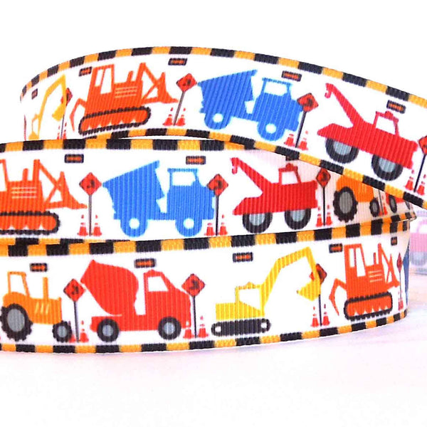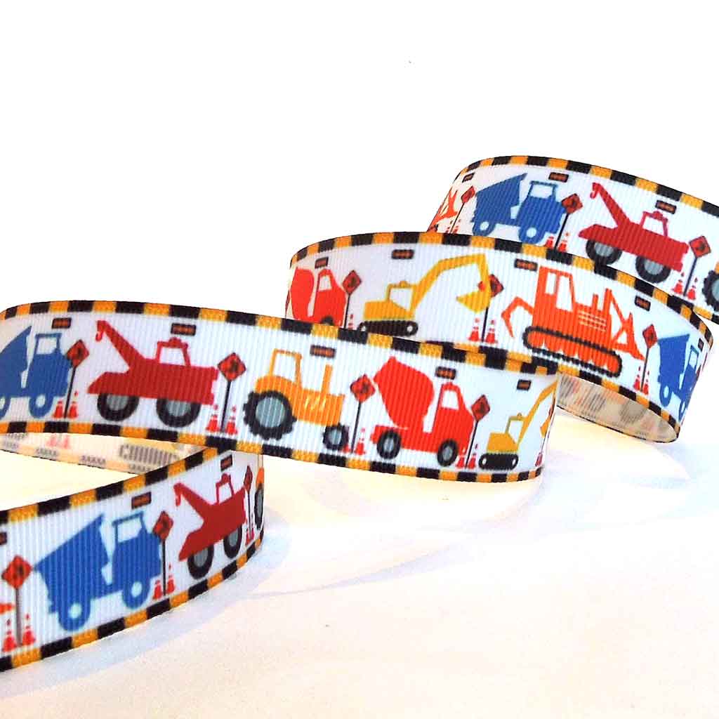 22mm Kid's Construction Truck Ribbon - Grosgrain