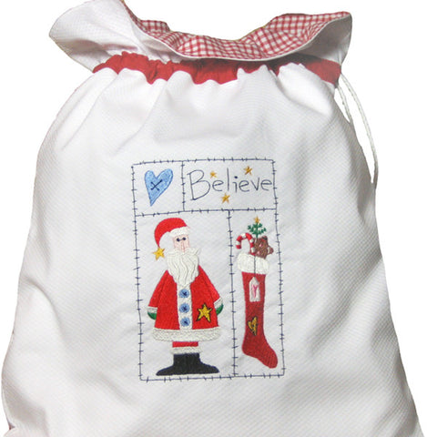 Father Christmas Toy Sack - Embroidered White Santa Drawstring Bag