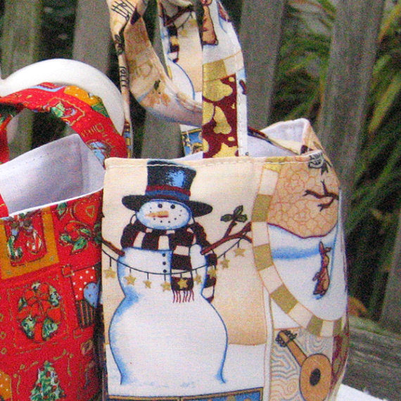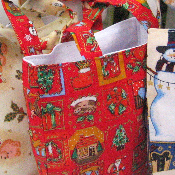Christmas Little Handbags Handmade Xmas Cotton Lined Gift Bags