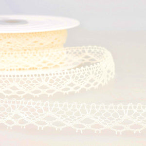 The white cotton lace is perfect for summer, dressmaking, weddings and babies.  Perfect for general crafting and gift wrap.