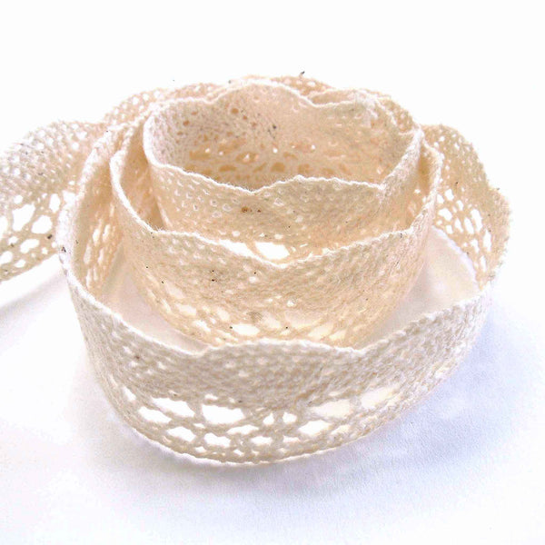 The cream scalloped cotton lace is perfect for summer, dressmaking, weddings and babies. Perfect for general crafting and gift wrap.