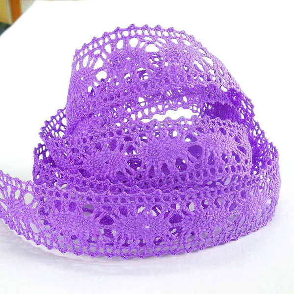 The lilac crocheted lace is perfect for summer, dressmaking, weddings and babies. Perfect for general crafting and gift wrap.